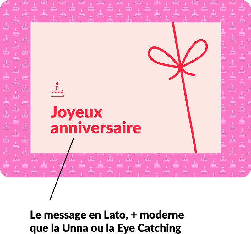 Pour la première version, la contrainte principale était de créer un visuel distinct pour chaque message (anniversaire, remerciement, fête, etc.), tout en déclinant une identité commune. J’avais opté pour un encadré avec un motif de vague et un fond coloré, afin de faciliter les déclinaisons graphiques.