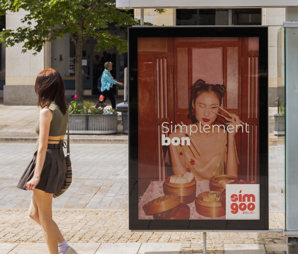 inspirée par l’esthétique minimaliste d’Uniqlo. Son logo reprend la forme carrée rouge et la
